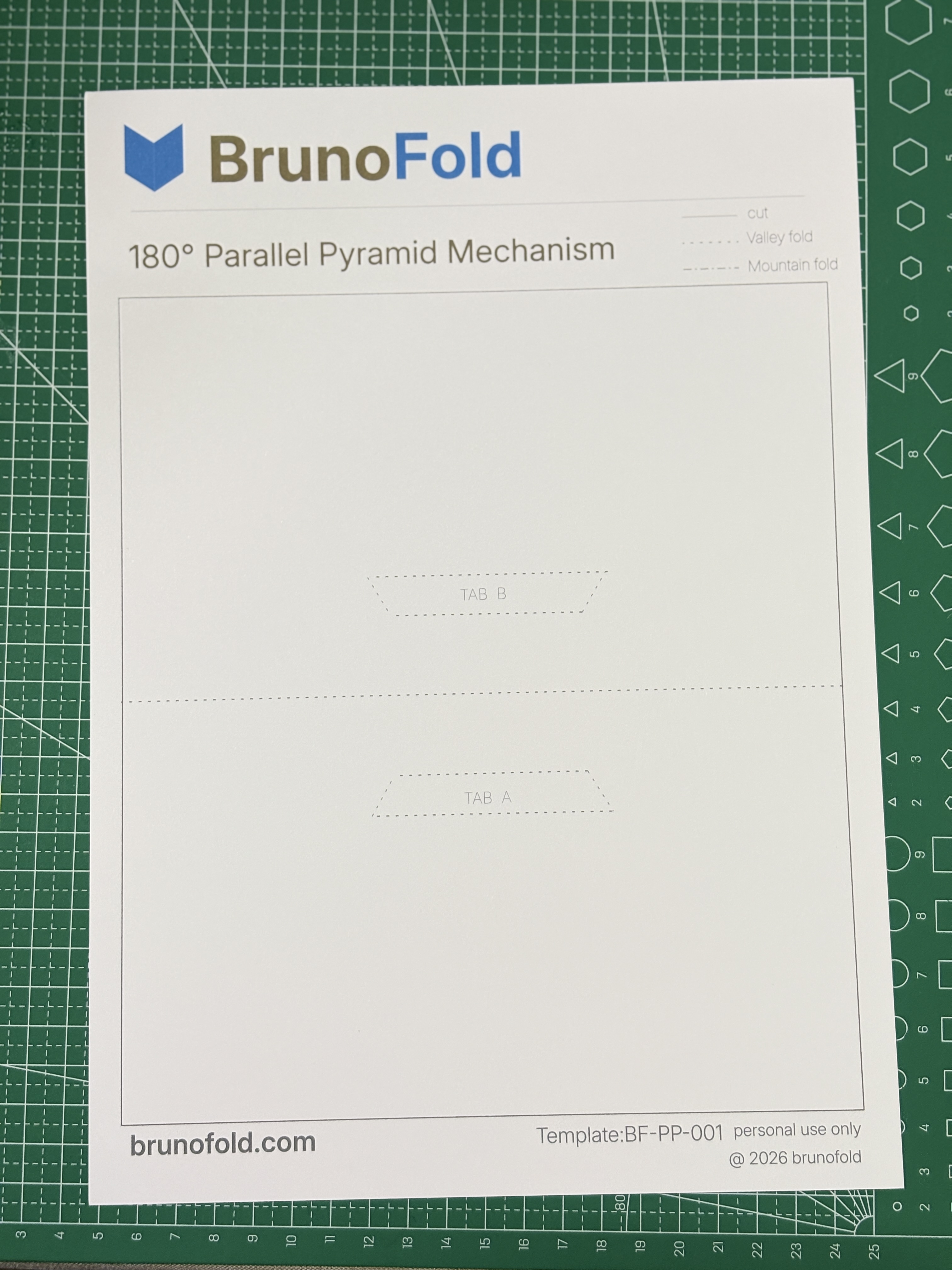Because the pyramid mechanism contains several parallel fold lines, folding it directly can create crooked creases, structural drift, or wrinkles in the paper. Scoring each fold in advance makes the folding path much more precise and helps the structure rise correctly when the spread opens.